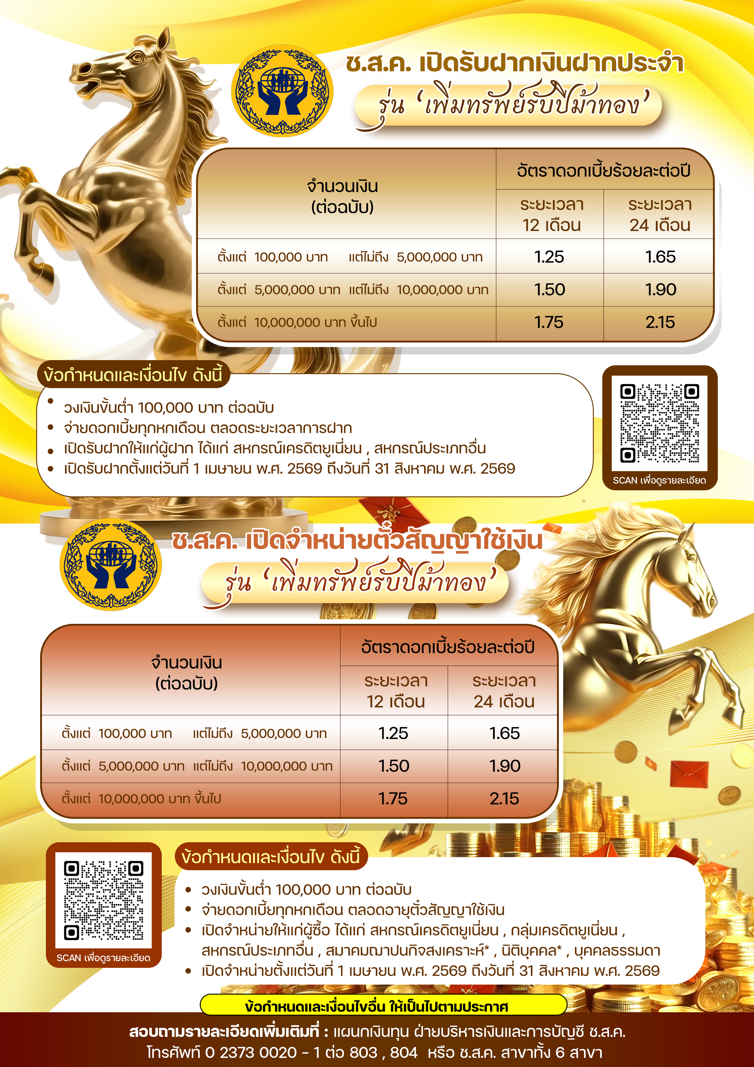 เรื่อง เปิดรับฝากเงินฝากประจำ และจำหน่ายตั๋วสัญญาใช้เงิน รุ่น "เพิ่มทรัพย์รับปีม้าทอง"