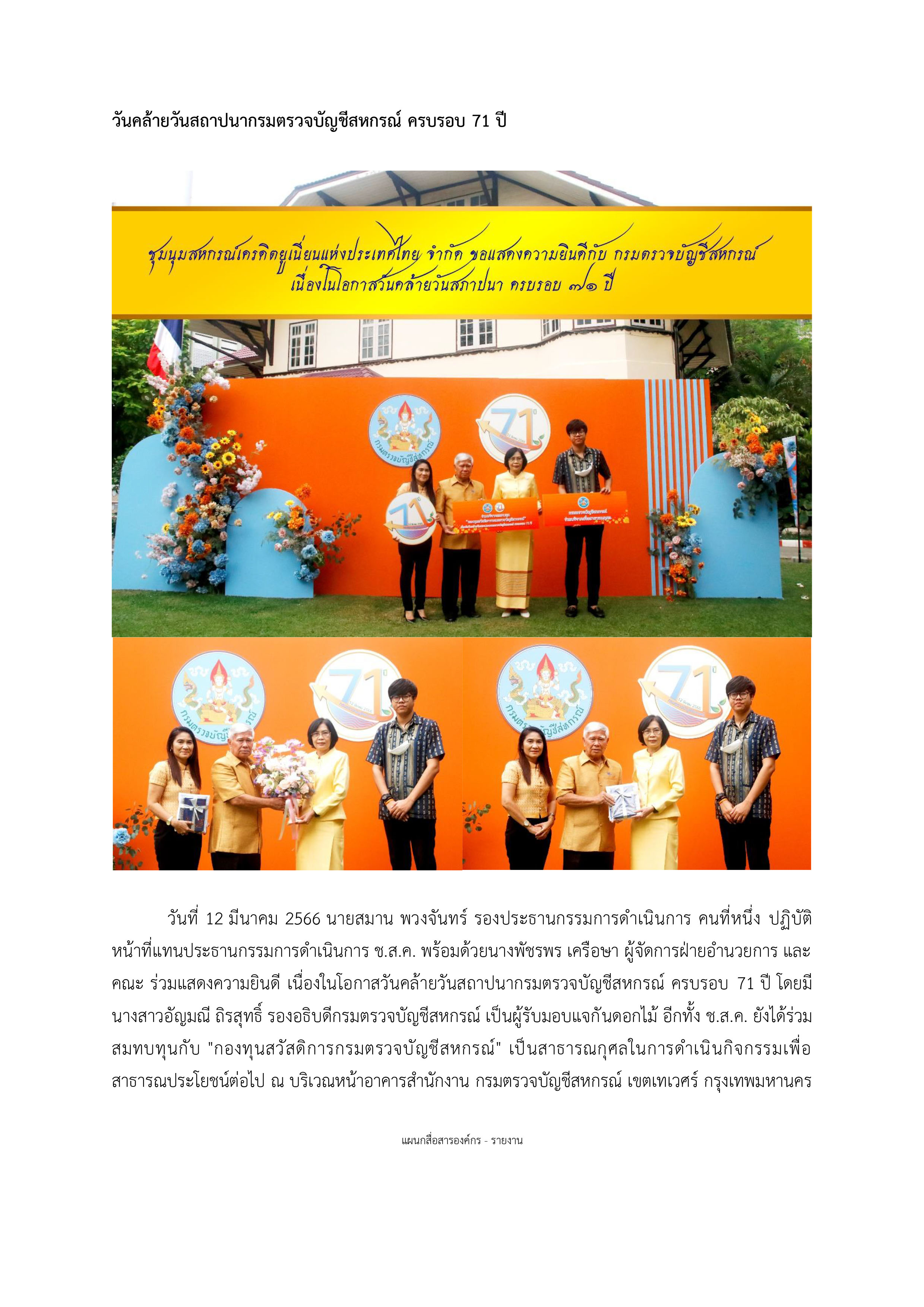 วันคล้ายวันสถาปนากรมตรวจบัญชีสหกรณ์ ครบรอบ 71 ปี