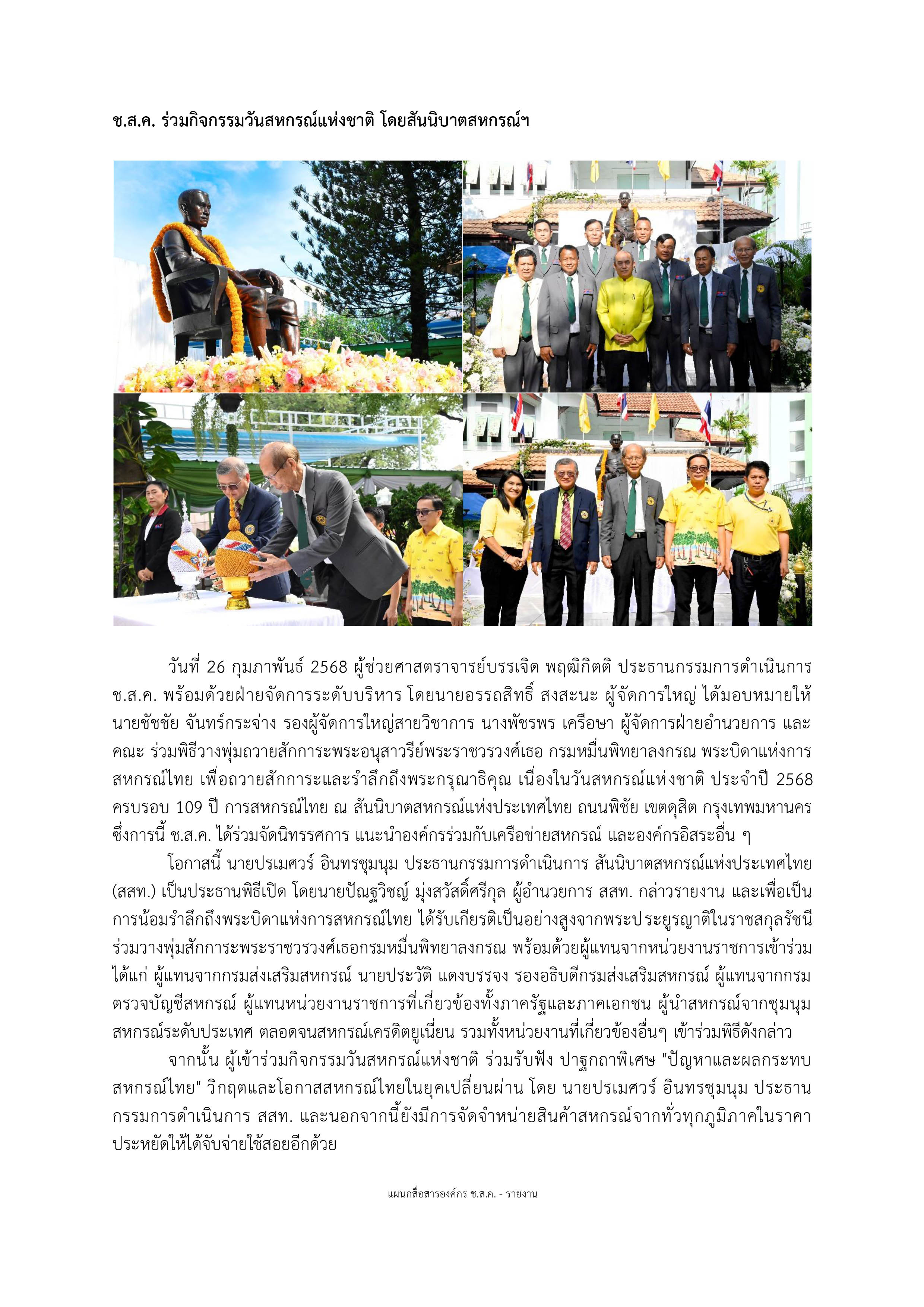 ช.ส.ค. ร่วมกิจกรรมวันสหกรณ์แห่งชาติ โดยสันนิบาตสหกรณ์ฯ