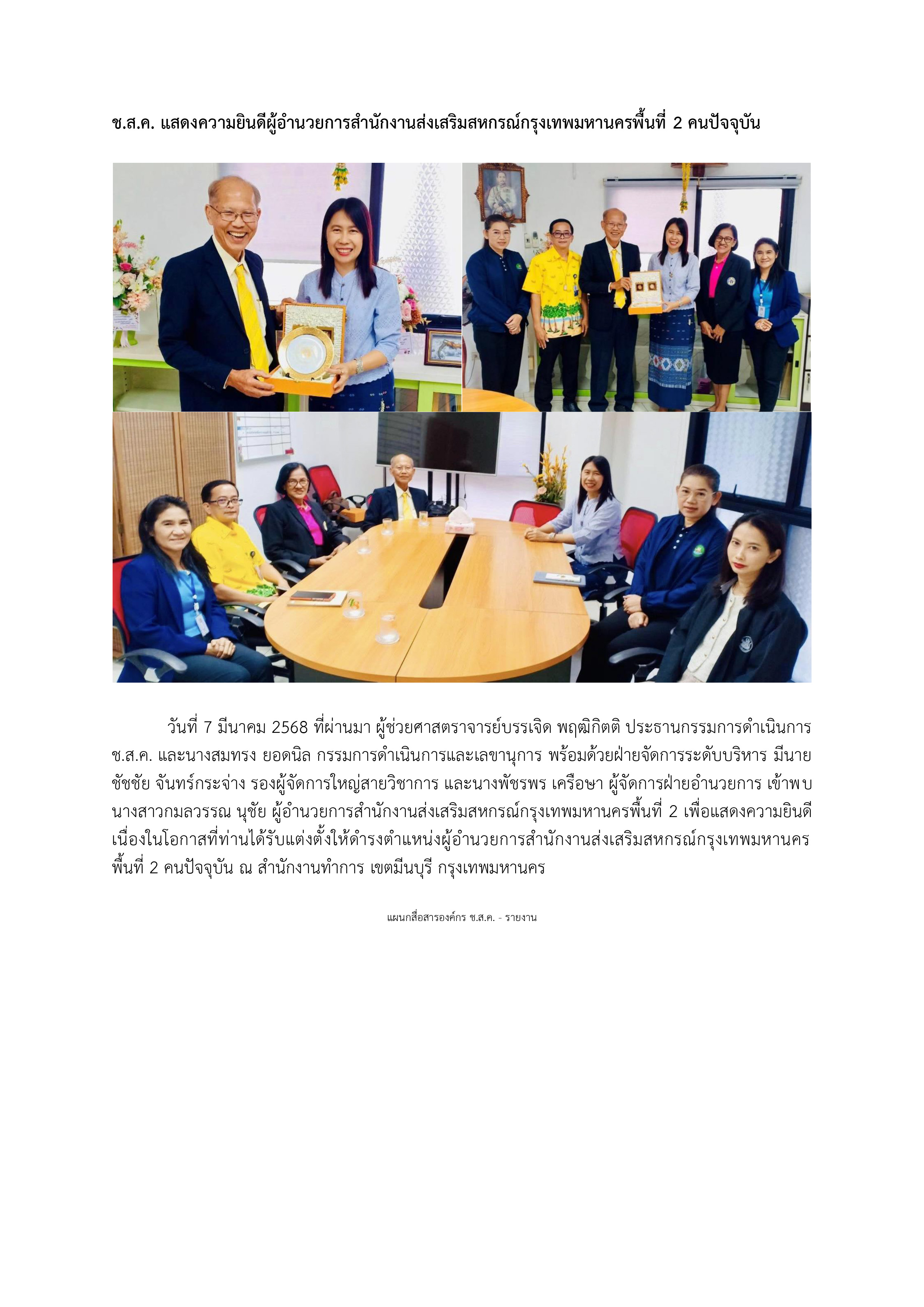 ข่าวประชาสัมพันธ์ ช.ส.ค. แสดงความยินดีผู้อำนวยการสำนักงานส่งเสริมสหกรณ์กรุงเทพมหานครพื้นที่ 2 คนปัจจุบัน
