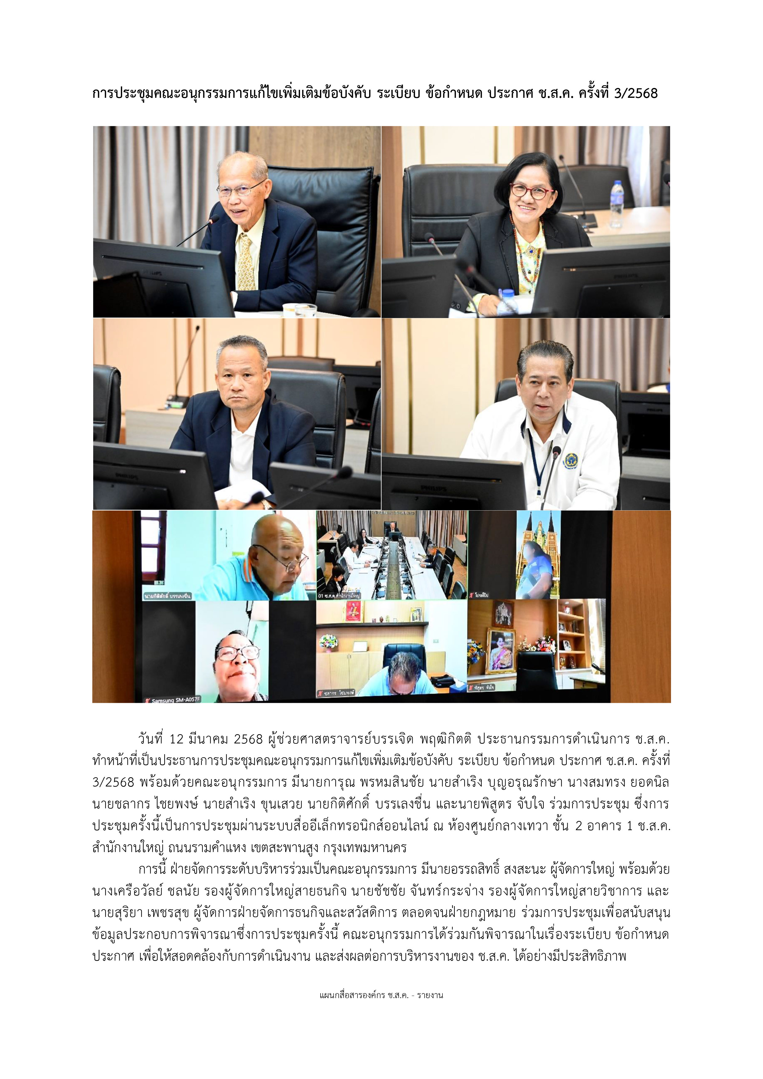 ข่าวประชาสัมพันธ์ การประชุมคณะอนุกรรมการแก้ไขเพิ่มเติมข้อบังคับ ระเบียบ ข้อกำหนด ประกาศ ช.ส.ค. ครั้งที่ 3/2568
