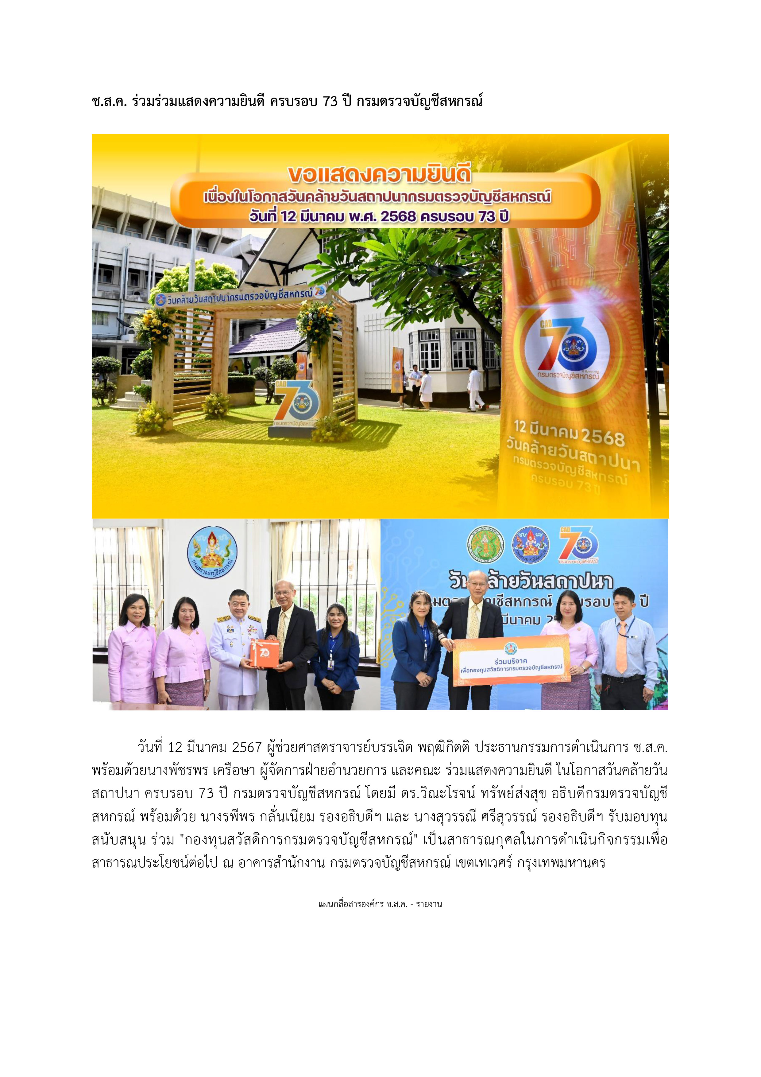 ช.ส.ค. ร่วมร่วมแสดงความยินดี ครบรอบ 73 ปี กรมตรวจบัญชีสหกรณ์