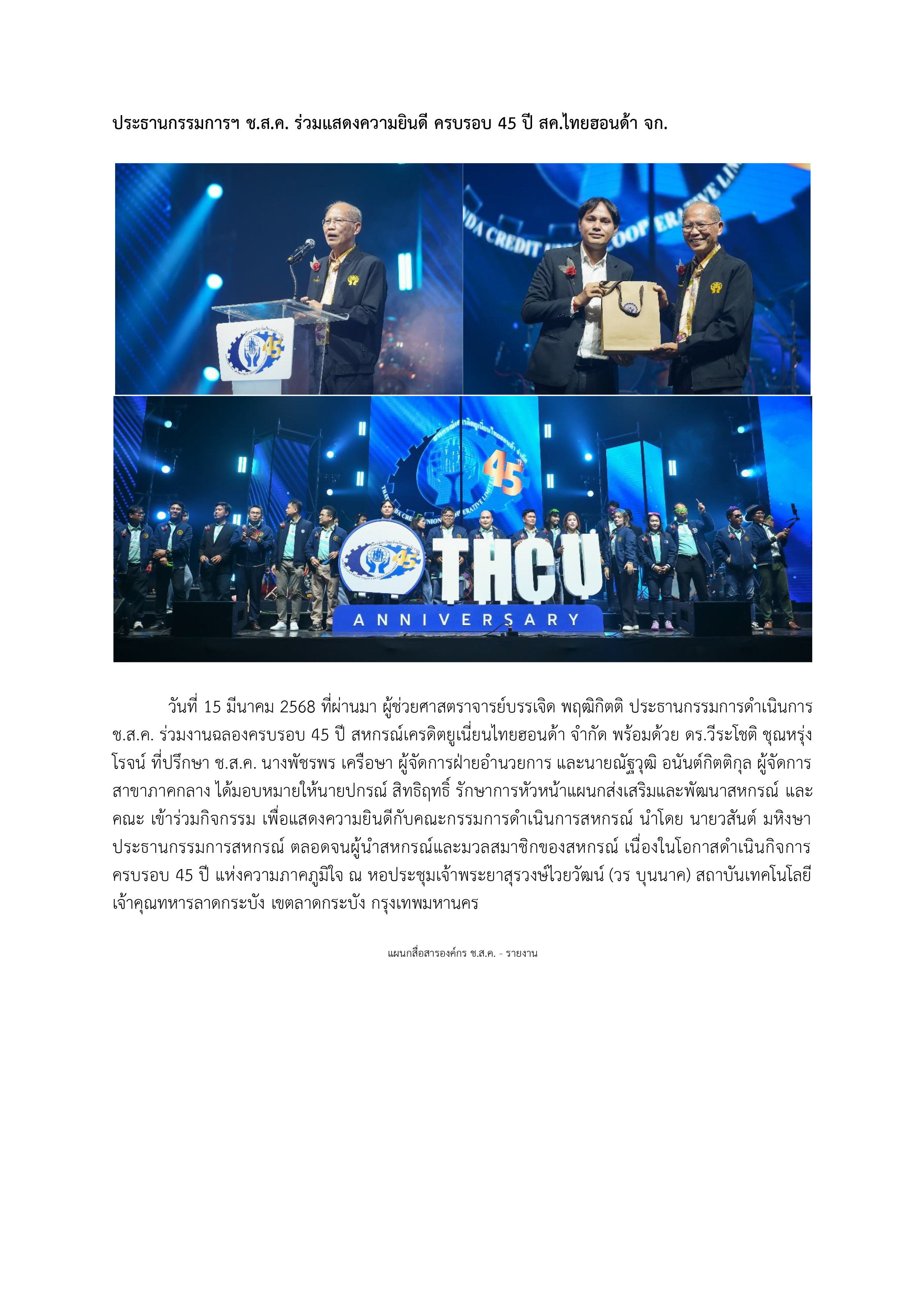 ประธานกรรมการฯ ช.ส.ค. ร่วมแสดงความยินดี ครบรอบ 45 ปี สค.ไทยฮอนด้า จก.