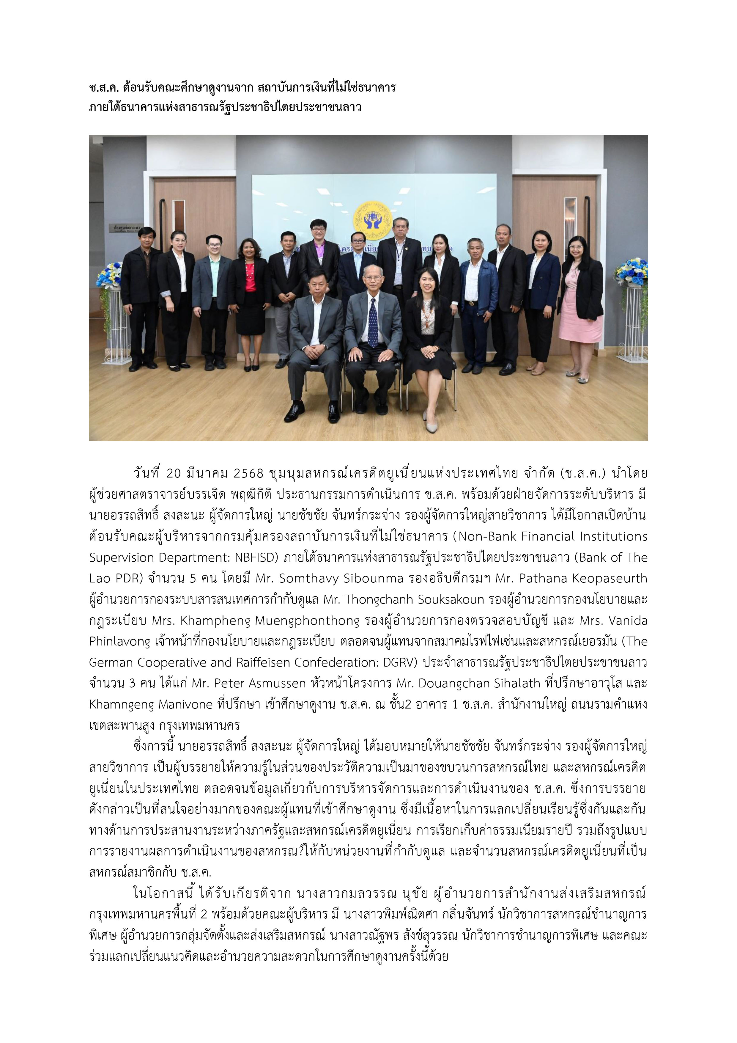 ข่าวประชาสัมพันธ์ ช.ส.ค. ต้อนรับคณะศึกษาดูงานจาก สถาบันการเงินที่ไม่ใช่ธนาคาร ภายใต้ธนาคารแห่งสาธารณรัฐประชาธิปไตยประชาชนลาว