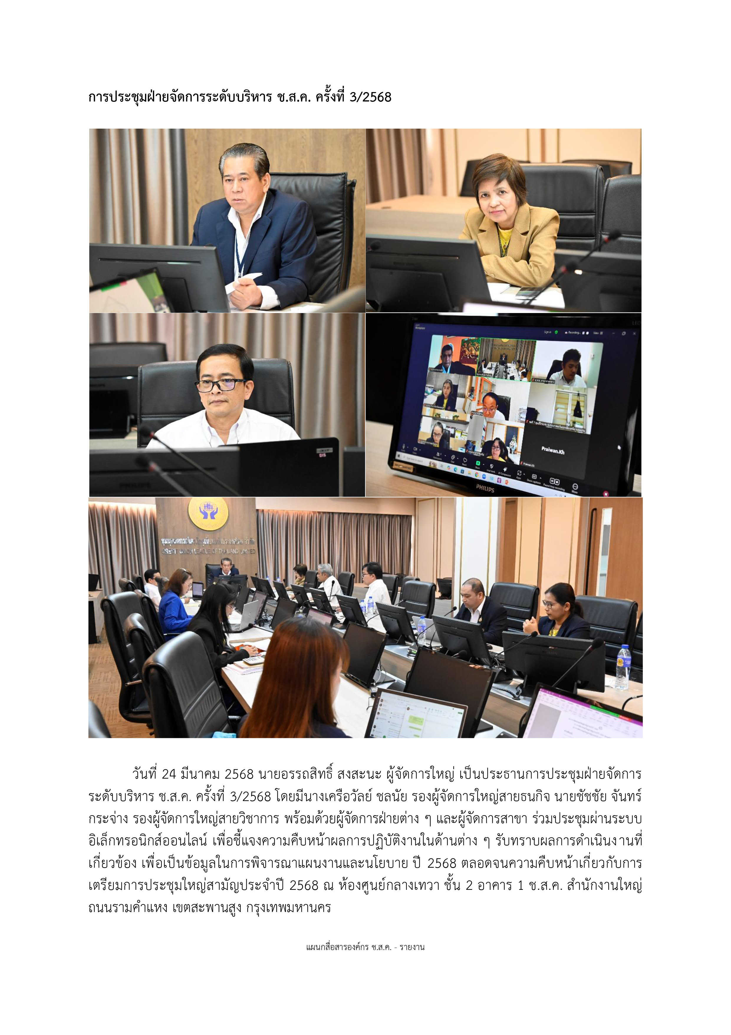 การประชุมฝ่ายจัดการระดับบริหาร ช.ส.ค. ครั้งที่ 3/2568
