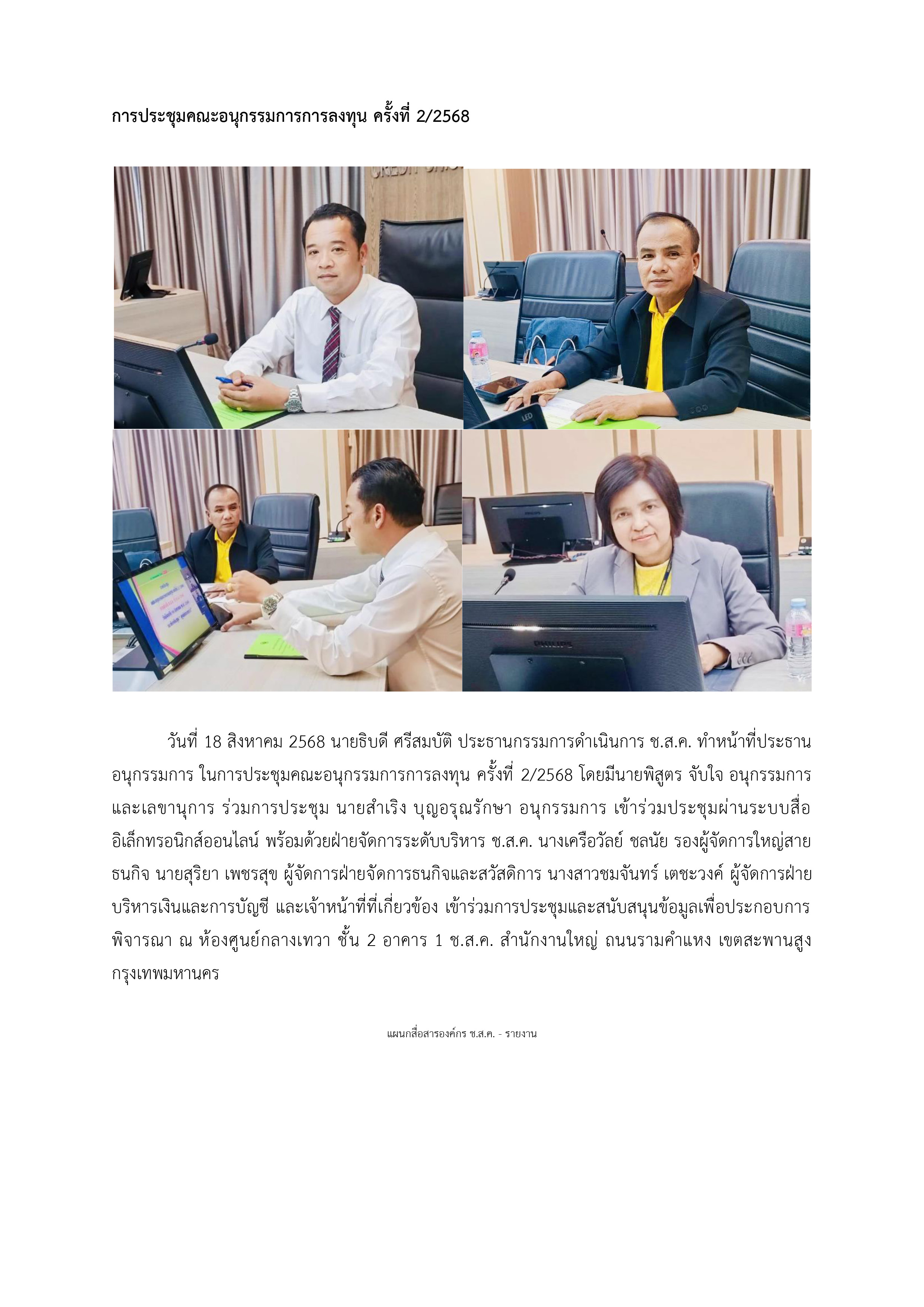 การประชุมคณะอนุกรรมการการลงทุน ครั้งที่ 2/2568