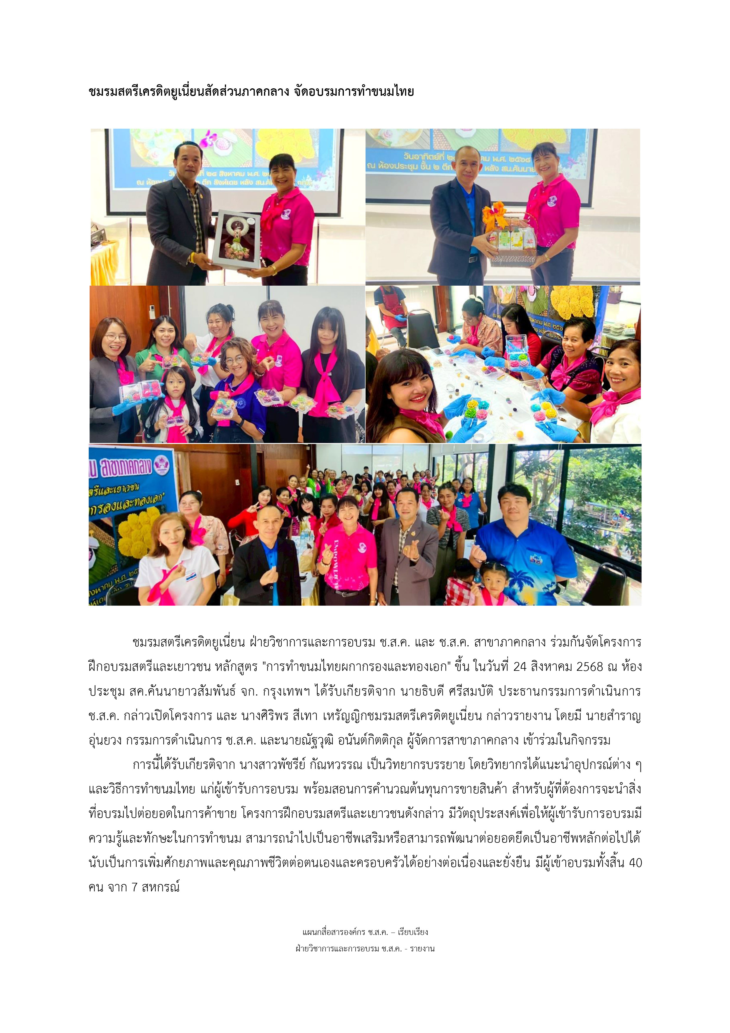 ชมรมสตรีเครดิตยูเนี่ยนสัดส่วนภาคกลาง จัดอบรมการทำขนมไทย