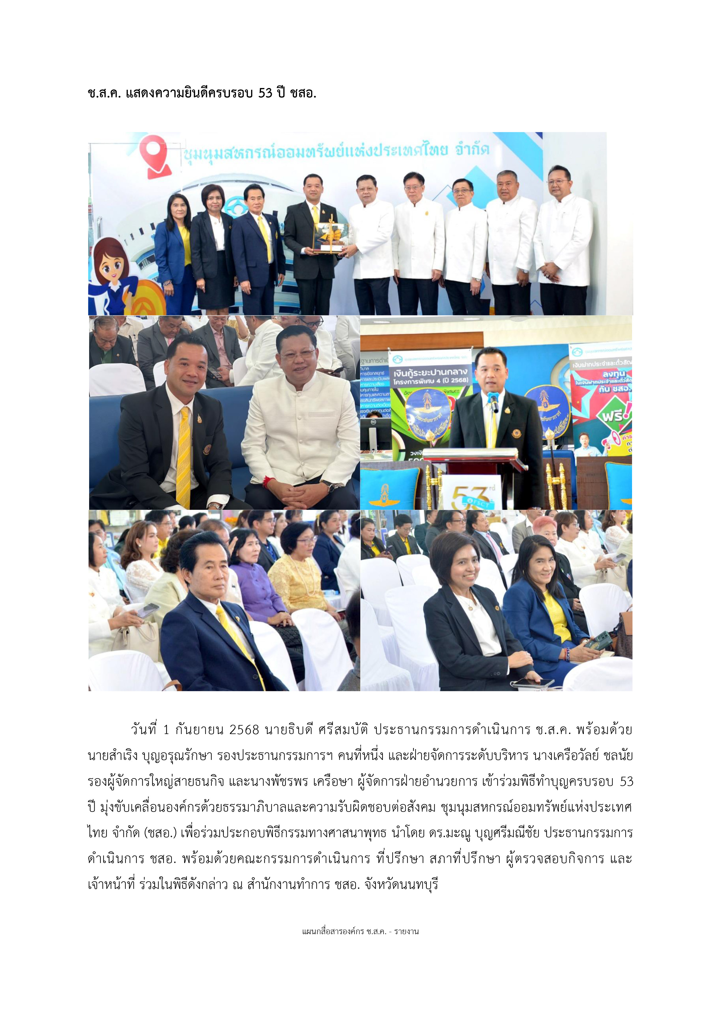 ช.ส.ค. แสดงความยินดีครบรอบ 53 ปี ชสอ.
