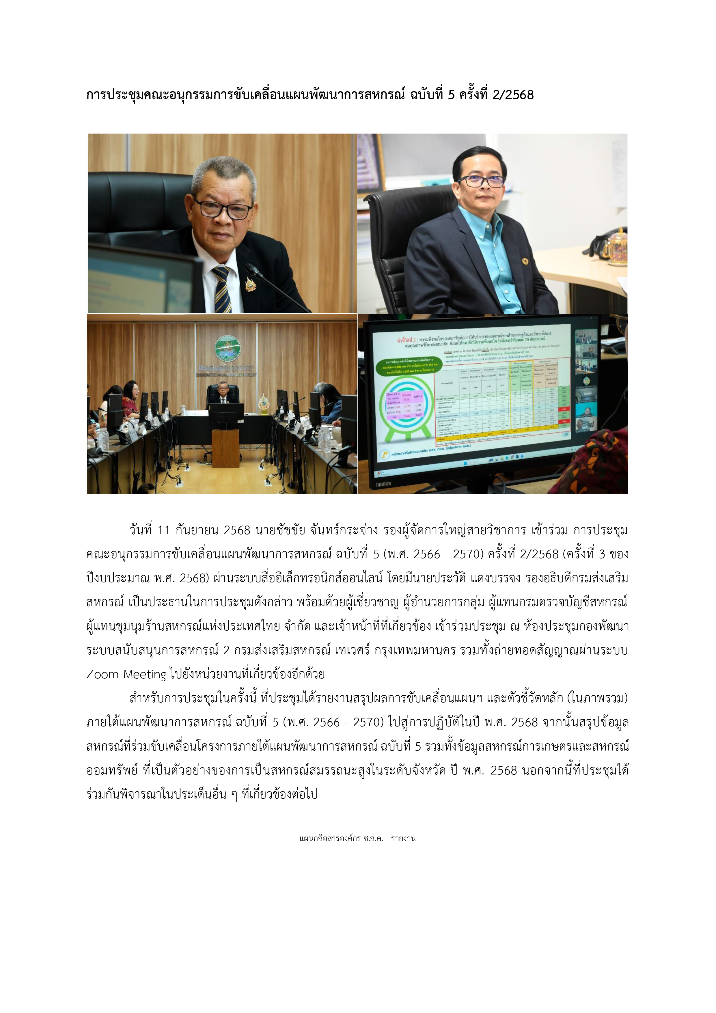 การประชุมคณะอนุกรรมการขับเคลื่อนแผนพัฒนาการสหกรณ์ ฉบับที่ 5 ครั้งที่ 2/2568