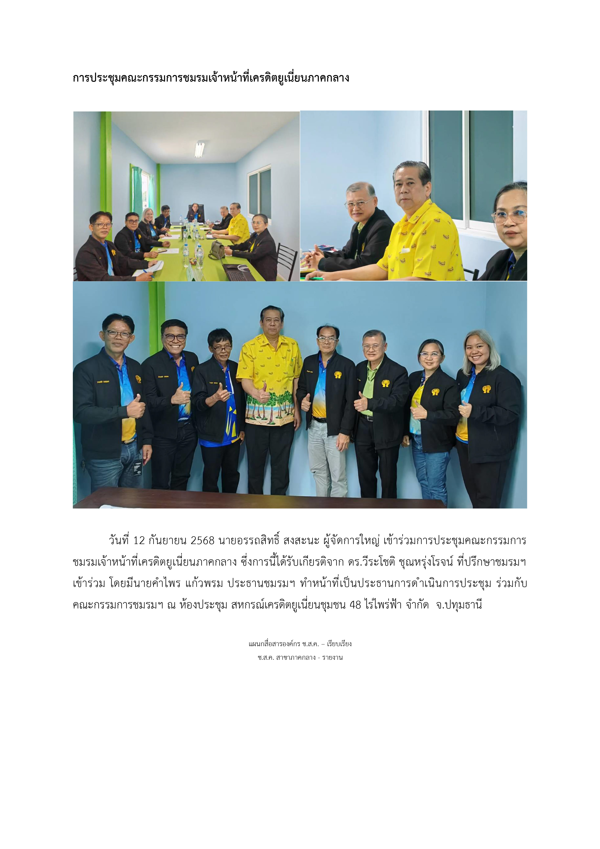 การประชุมคณะกรรมการชมรมเจ้าหน้าที่เครดิตยูเนี่ยนภาคกลาง
