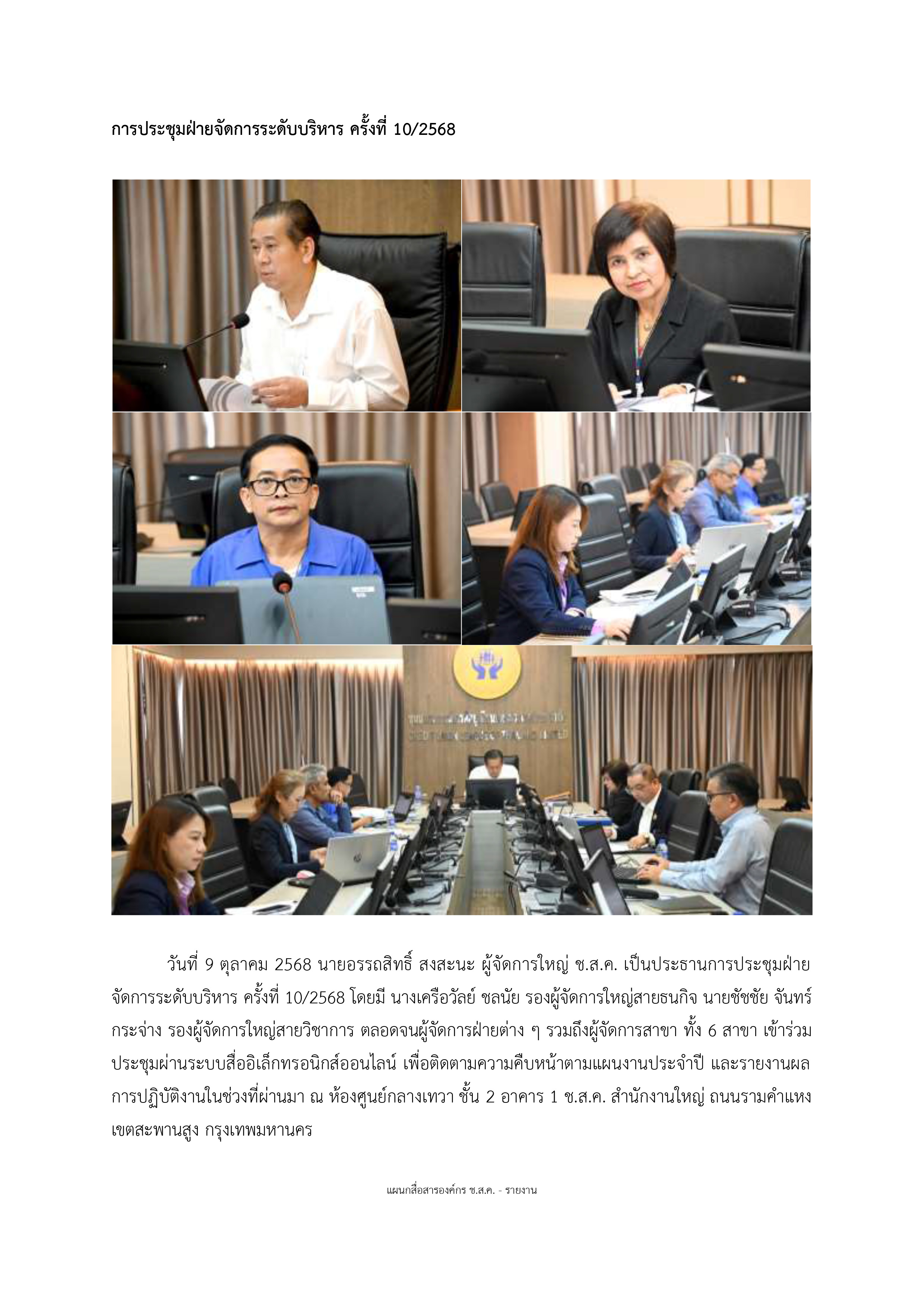 การประชุมฝ่ายจัดการระดับบริหาร ครั้งที่ 10/2568