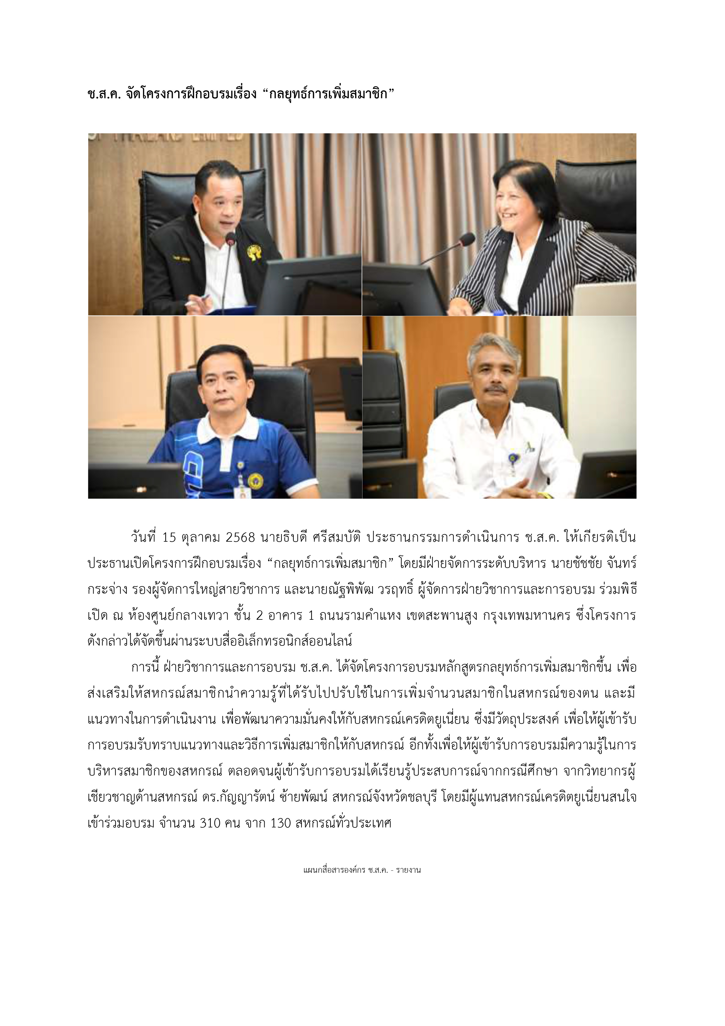 ช.ส.ค. จัดโครงการฝึกอบรมเรื่อง “กลยุทธ์การเพิ่มสมาชิก”
