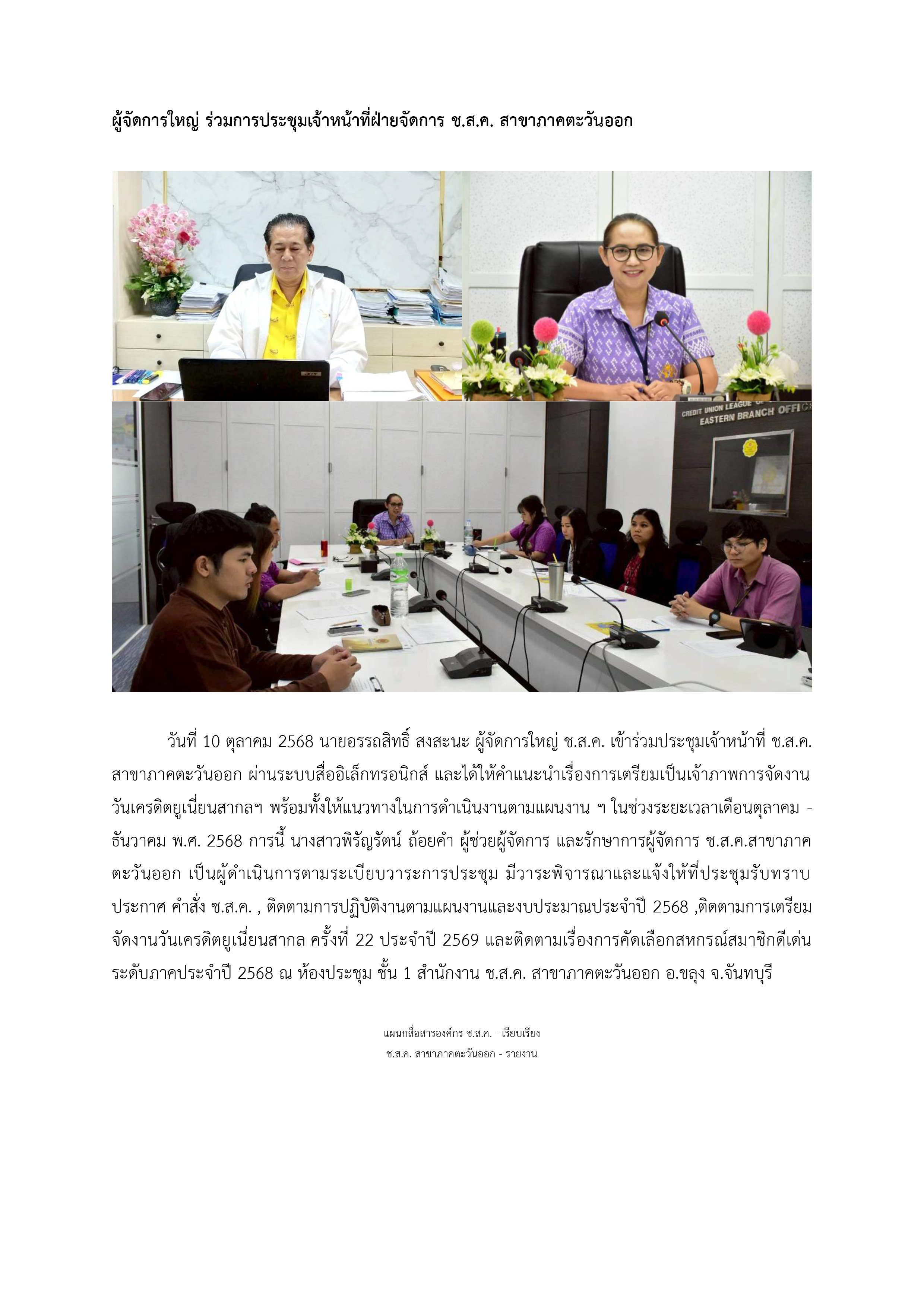 ผู้จัดการใหญ่ ร่วมการประชุมเจ้าหน้าที่ฝ่ายจัดการ ช.ส.ค. สาขาภาคตะวันออก