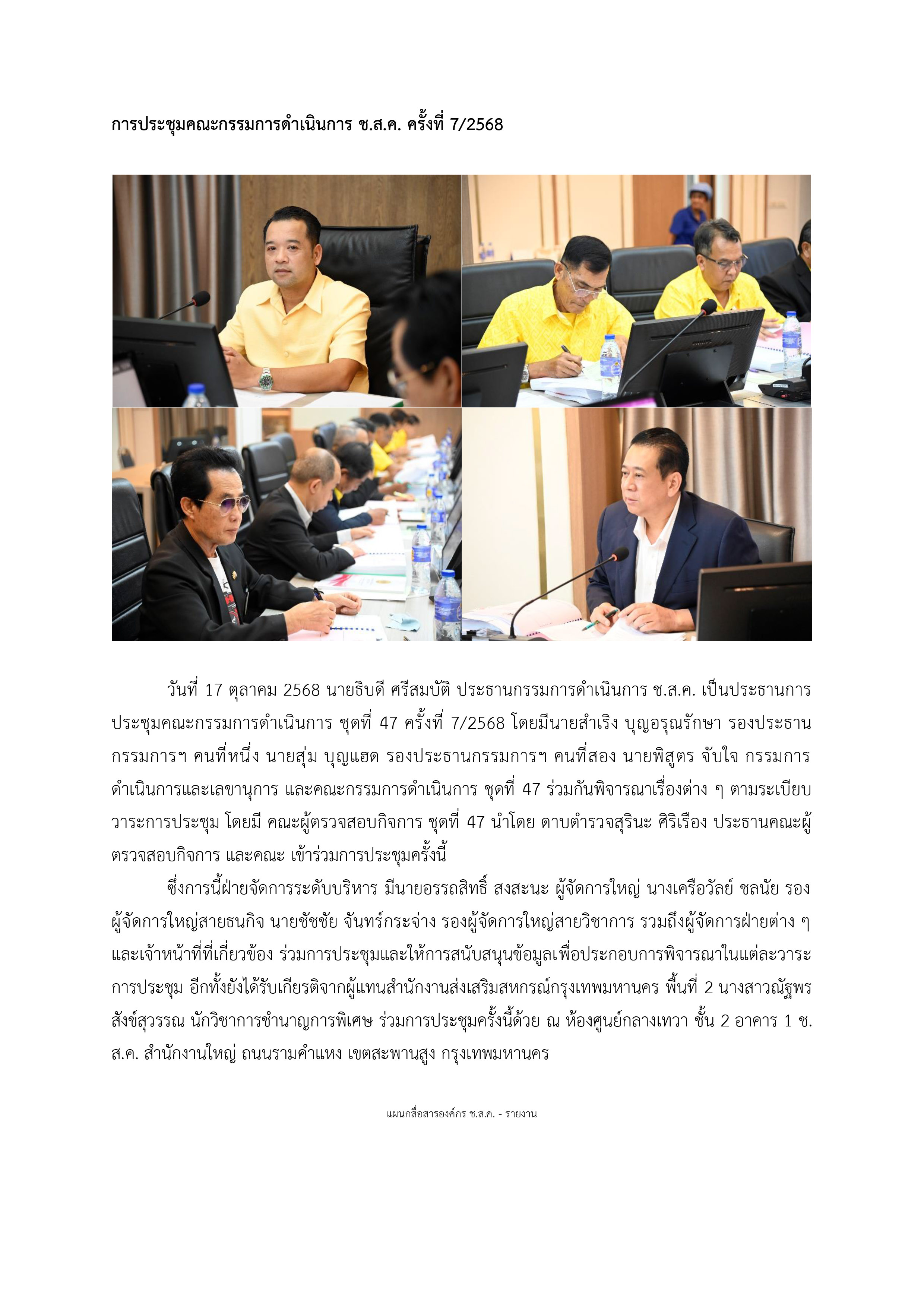 การประชุมคณะกรรมการดำเนินการ ช.ส.ค. ครั้งที่ 7/2568
