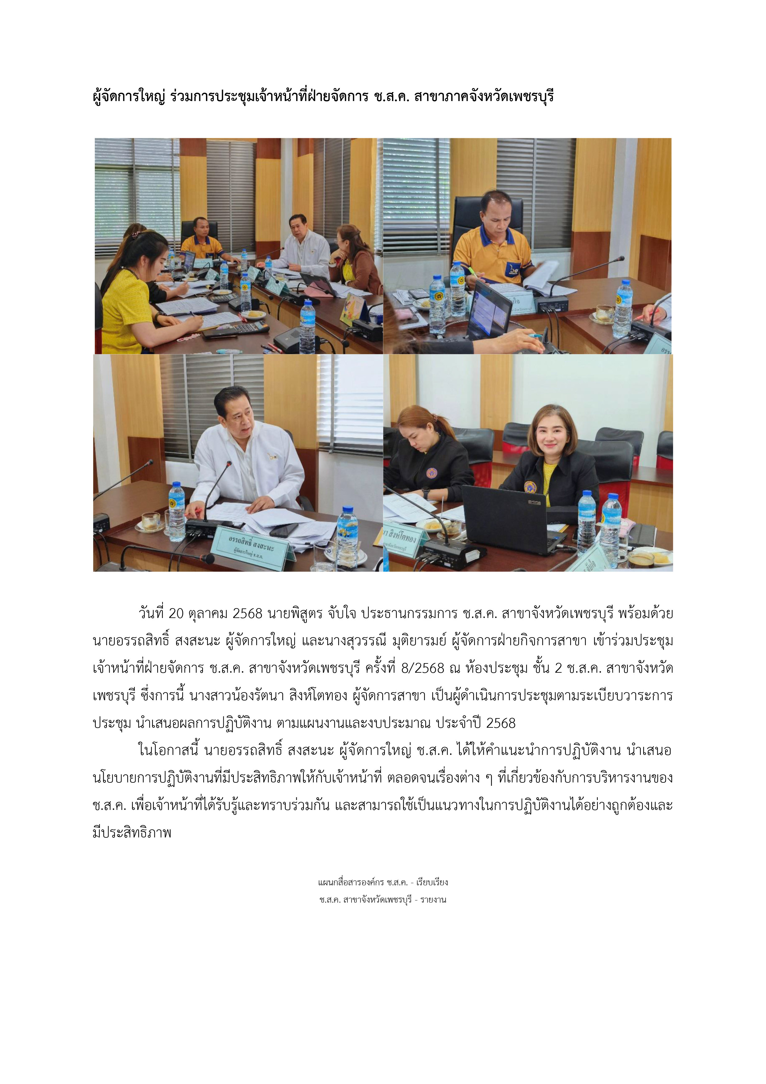 ผู้จัดการใหญ่ ร่วมการประชุมเจ้าหน้าที่ฝ่ายจัดการ ช.ส.ค. สาขาภาคจังหวัดเพชรบุรี