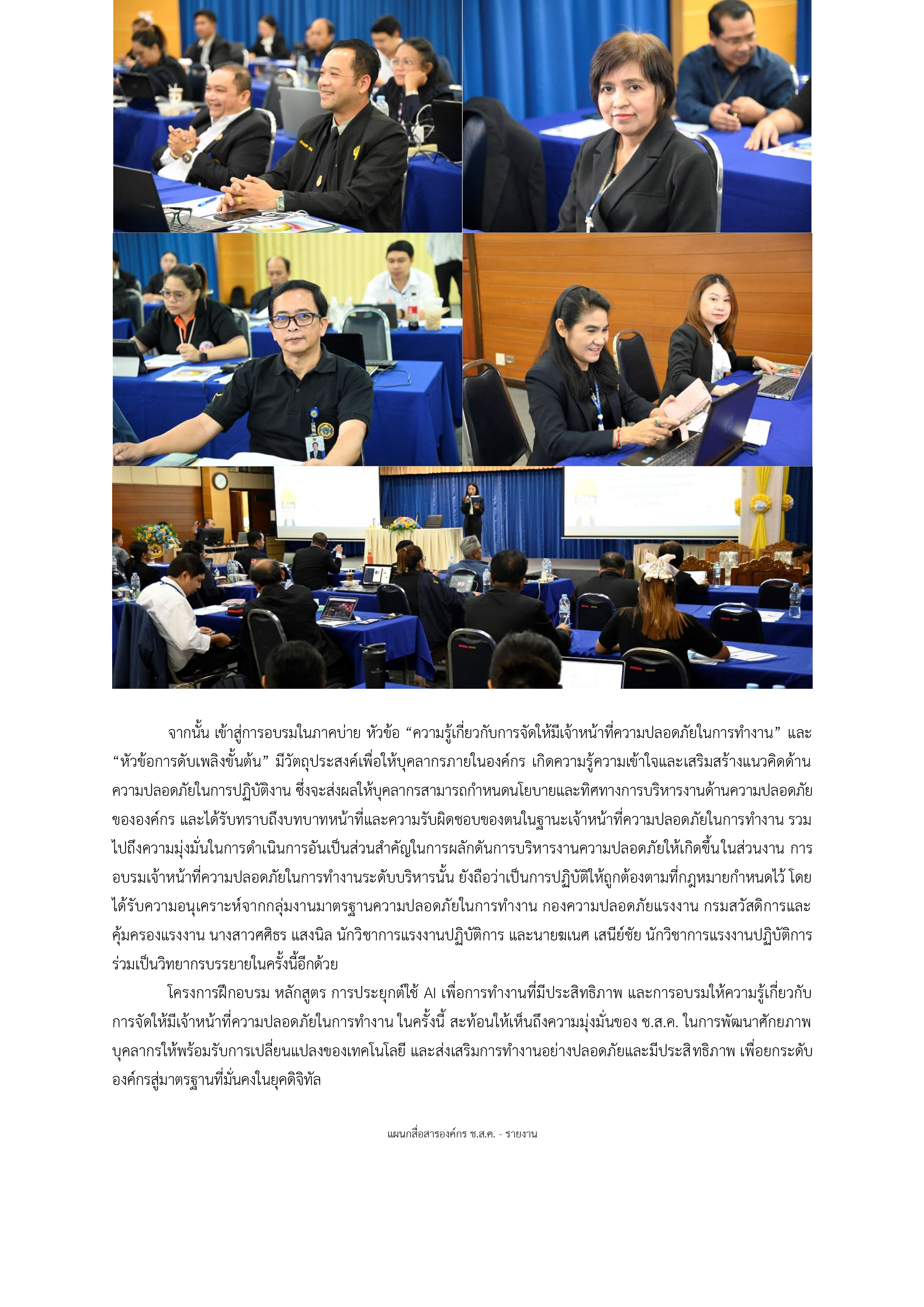 ข่าวประชาสัมพันธ์ โครงการฝึกอบรม หลักสูตร การประยุกต์ใช้ AI เพื่อการทำงานที่มีประสิทธิภาพ และการอบรมให้ความรู้เกี่ยวกับการจัดให้มีเจ้าหน้าที่ความปลอดภัยในการทำงาน
