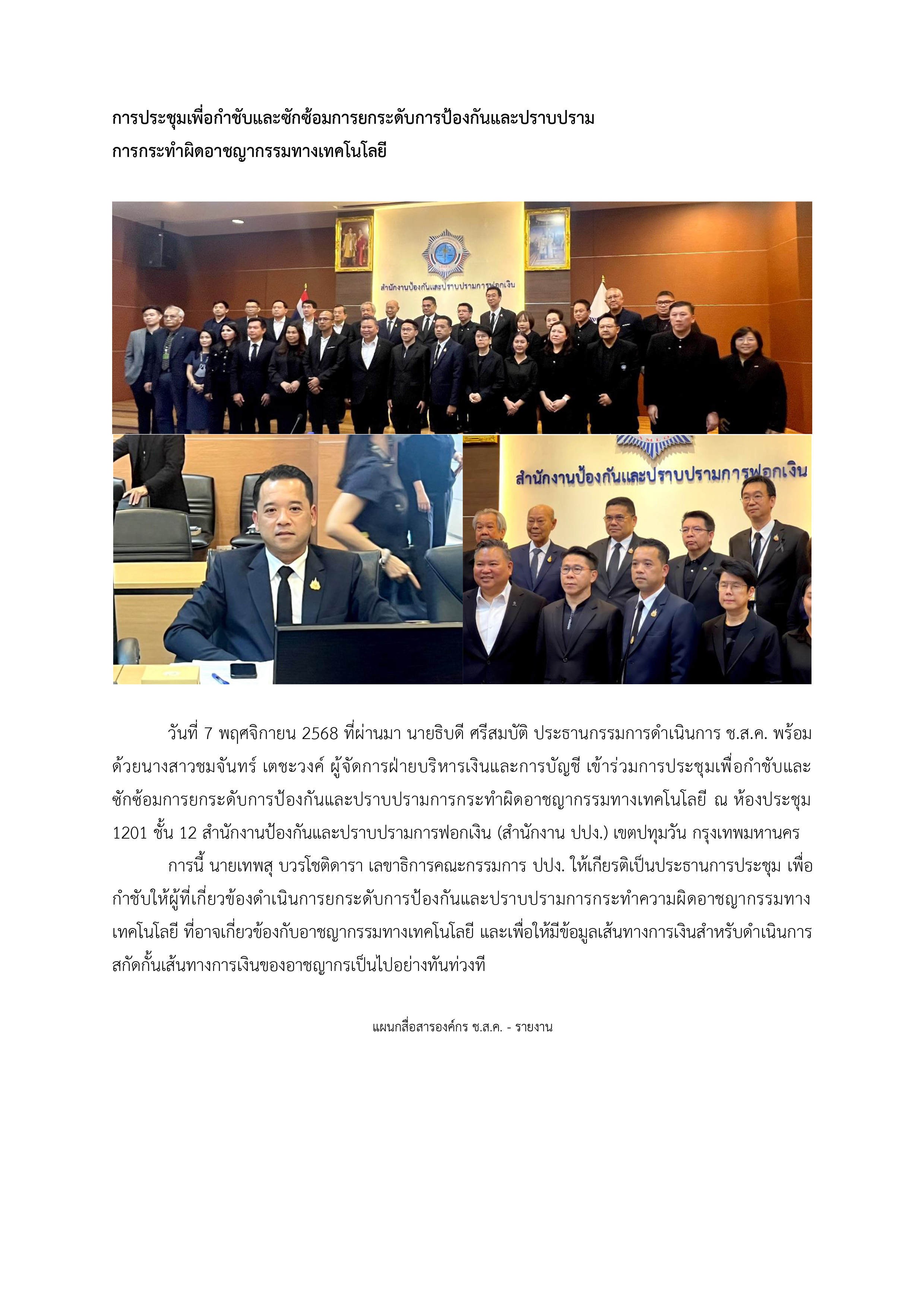ข่าวประชาสัมพันธ์ การประชุมเพื่อกำชับและซักซ้อมการยกระดับการป้องกันและปราบปรามการกระทำผิดอาชญากรรมทางเทคโนโลยี