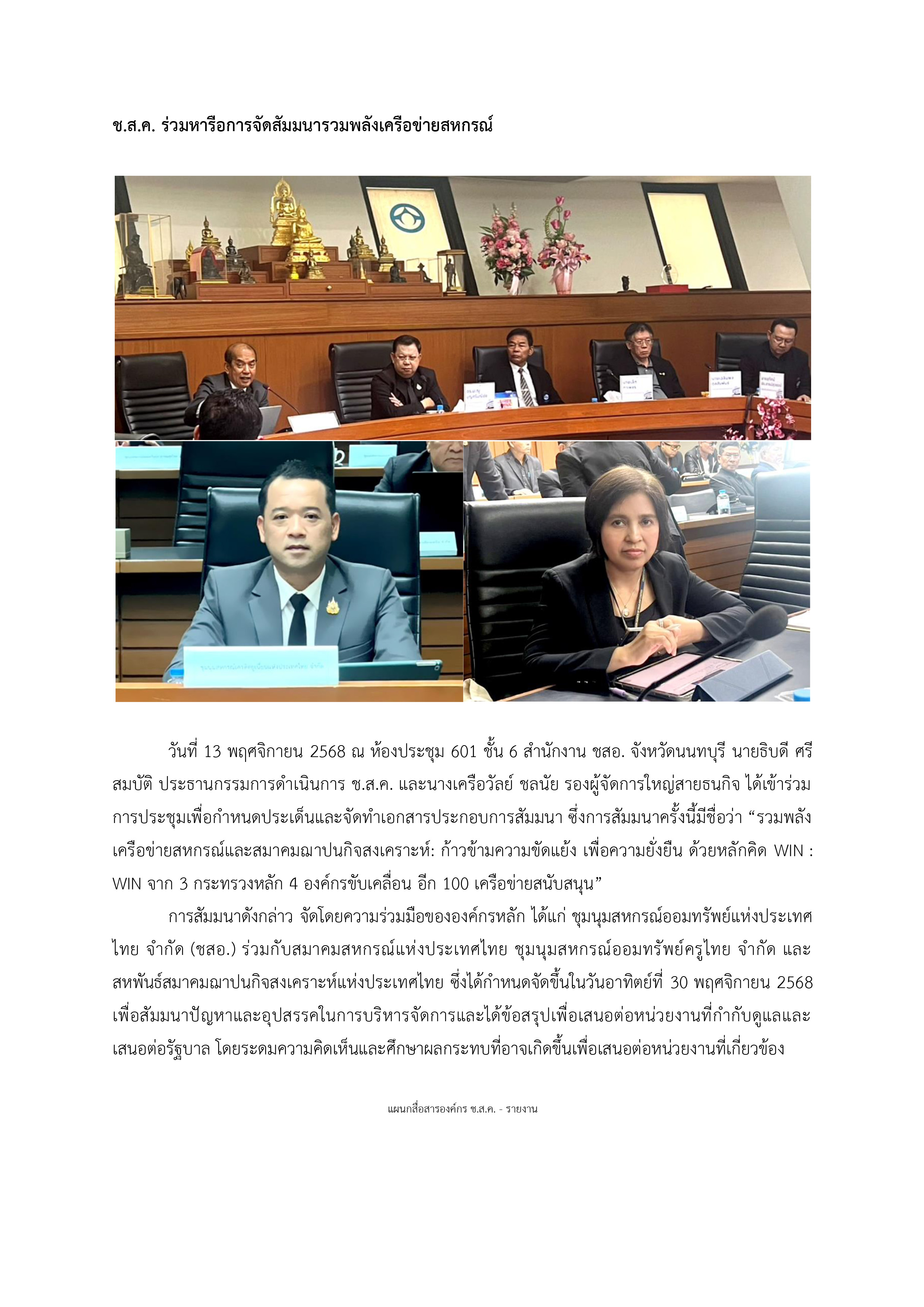 ช.ส.ค. ร่วมหารือการจัดสัมมนารวมพลังเครือข่ายสหกรณ์