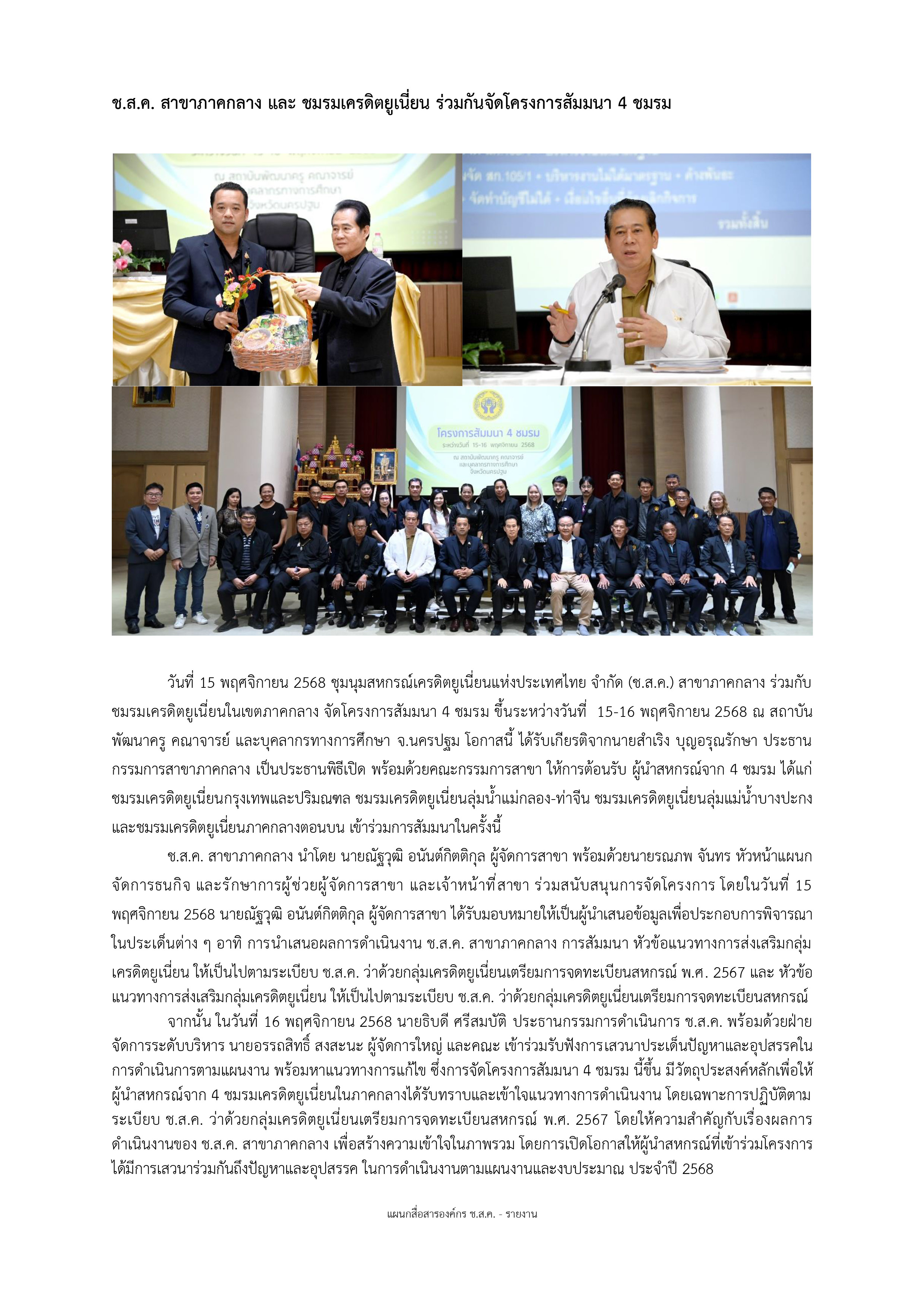 ช.ส.ค. สาขาภาคกลาง และ ชมรมเครดิตยูเนี่ยน ร่วมกันจัดโครงการสัมมนา 4 ชมรม