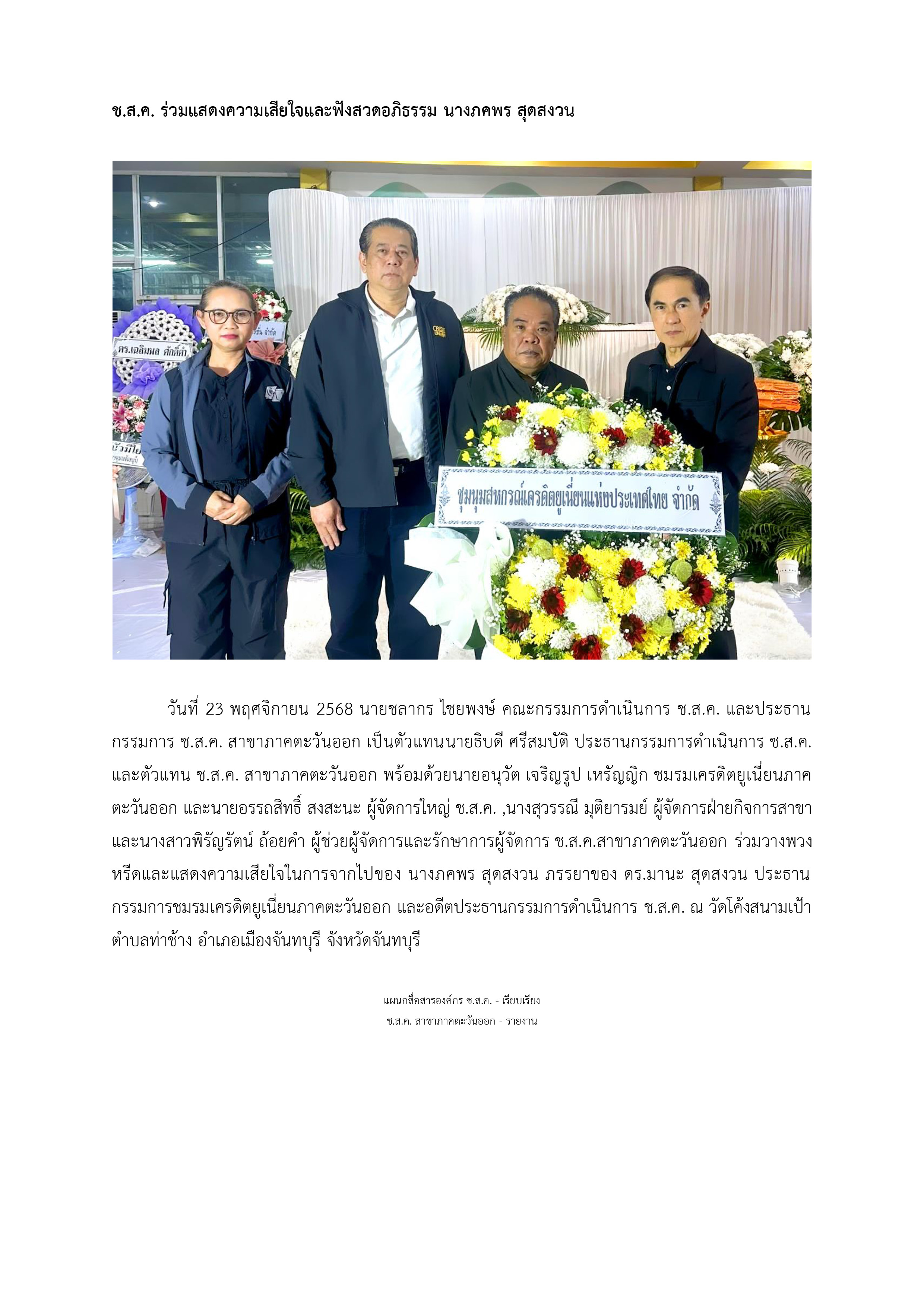 ช.ส.ค. ร่วมแสดงความเสียใจและฟังสวดอภิธรรม นางภคพร สุดสงวน