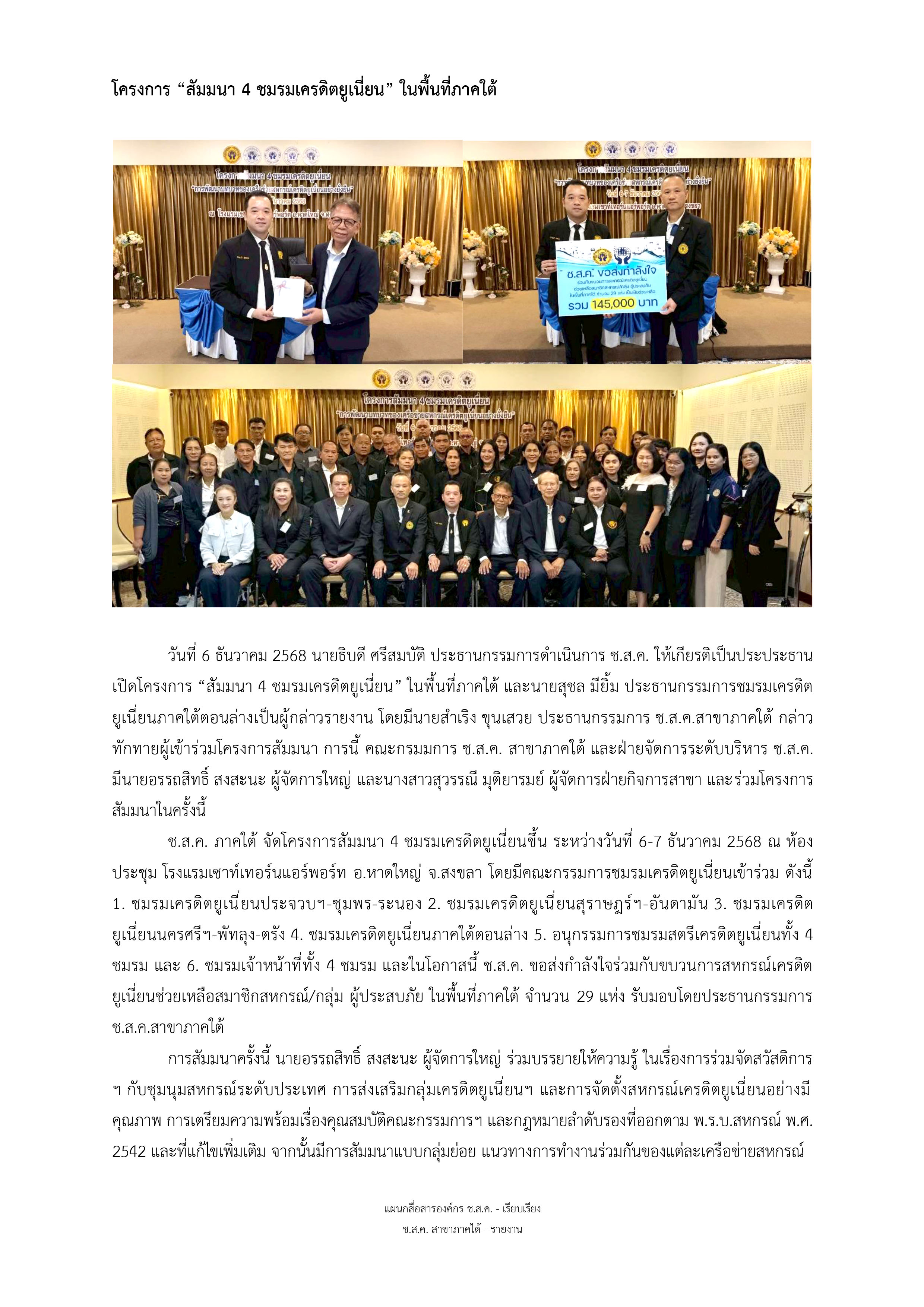โครงการ “สัมมนา 4 ชมรมเครดิตยูเนี่ยน” ในพื้นที่ภาคใต้