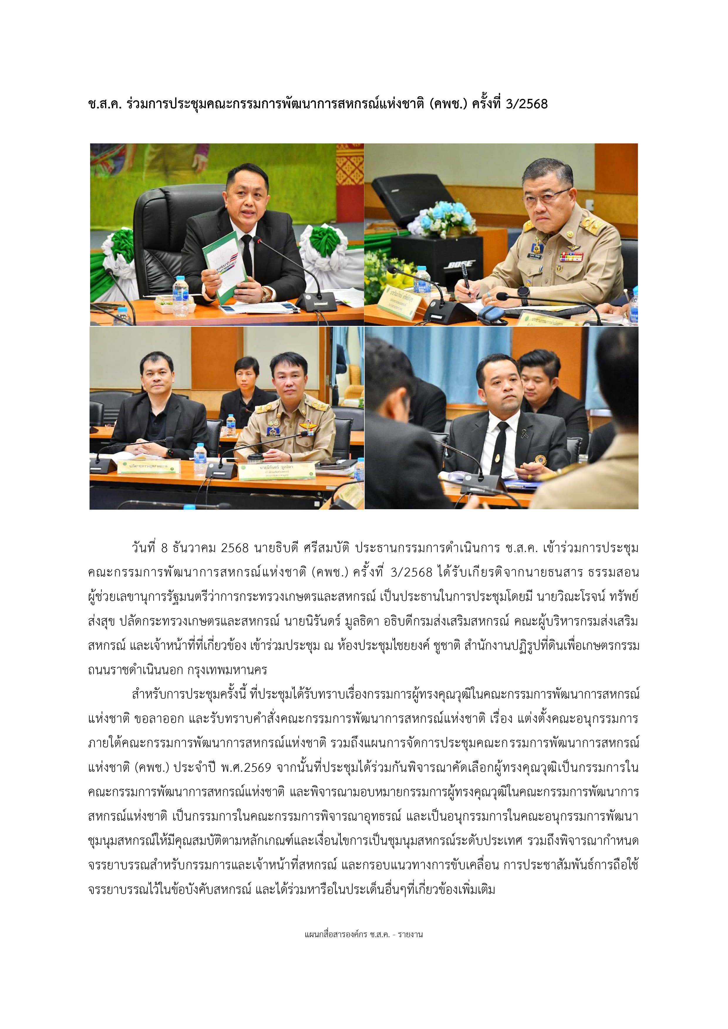 ช.ส.ค. ร่วมการประชุมคณะกรรมการพัฒนาการสหกรณ์แห่งชาติ (คพช.) ครั้งที่ 3/2568