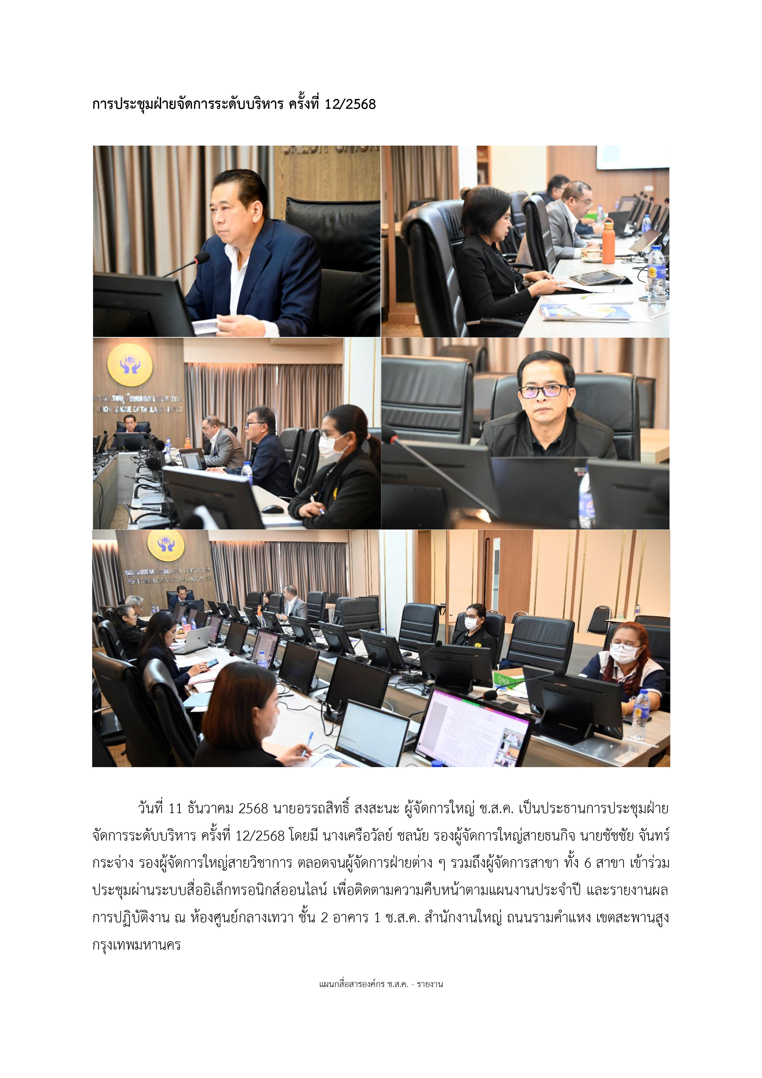การประชุมฝ่ายจัดการระดับบริหาร ครั้งที่ 12/2568