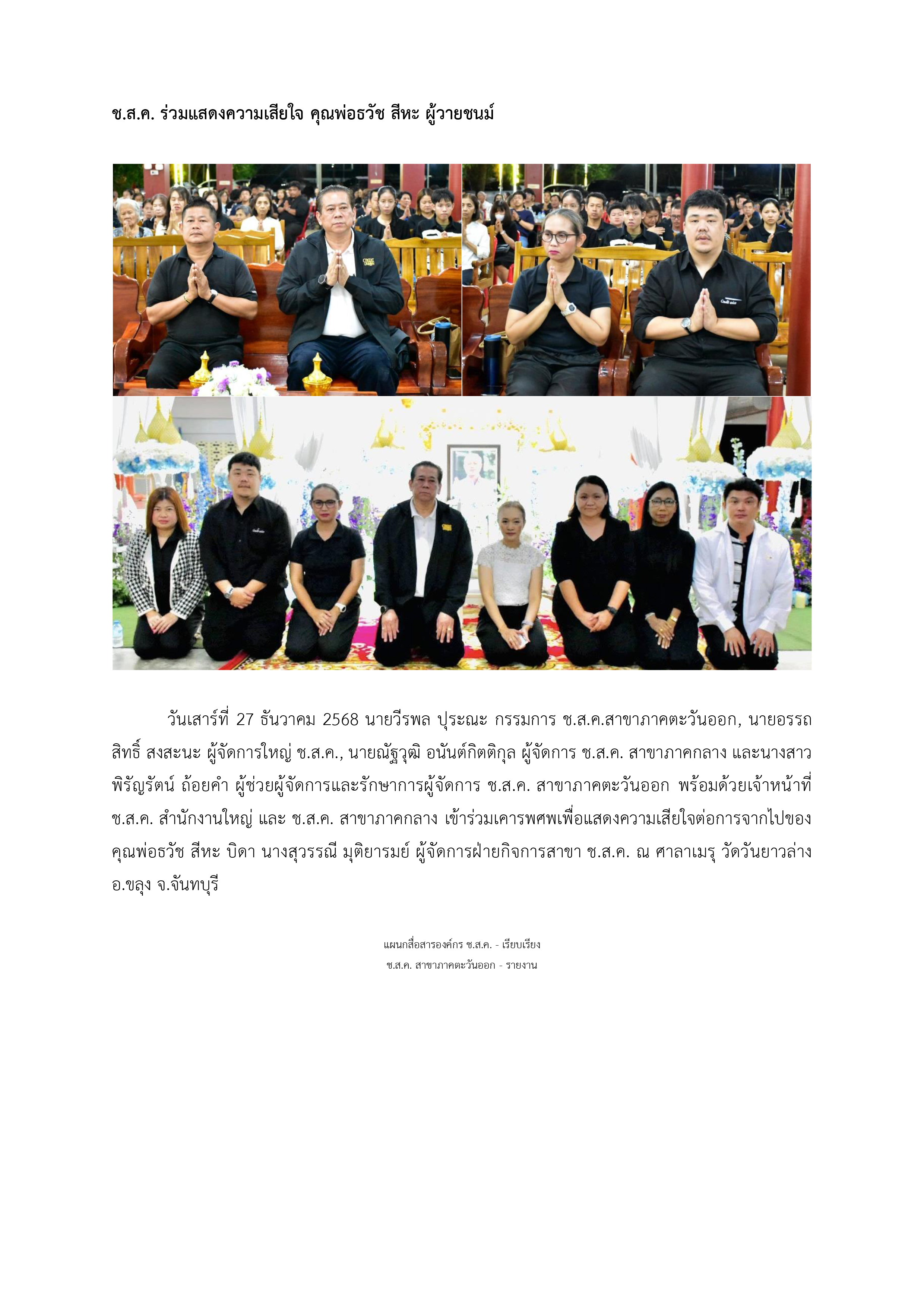 ช.ส.ค. ร่วมแสดงความเสียใจ คุณพ่อธวัช สีหะ ผู้วายชนม์