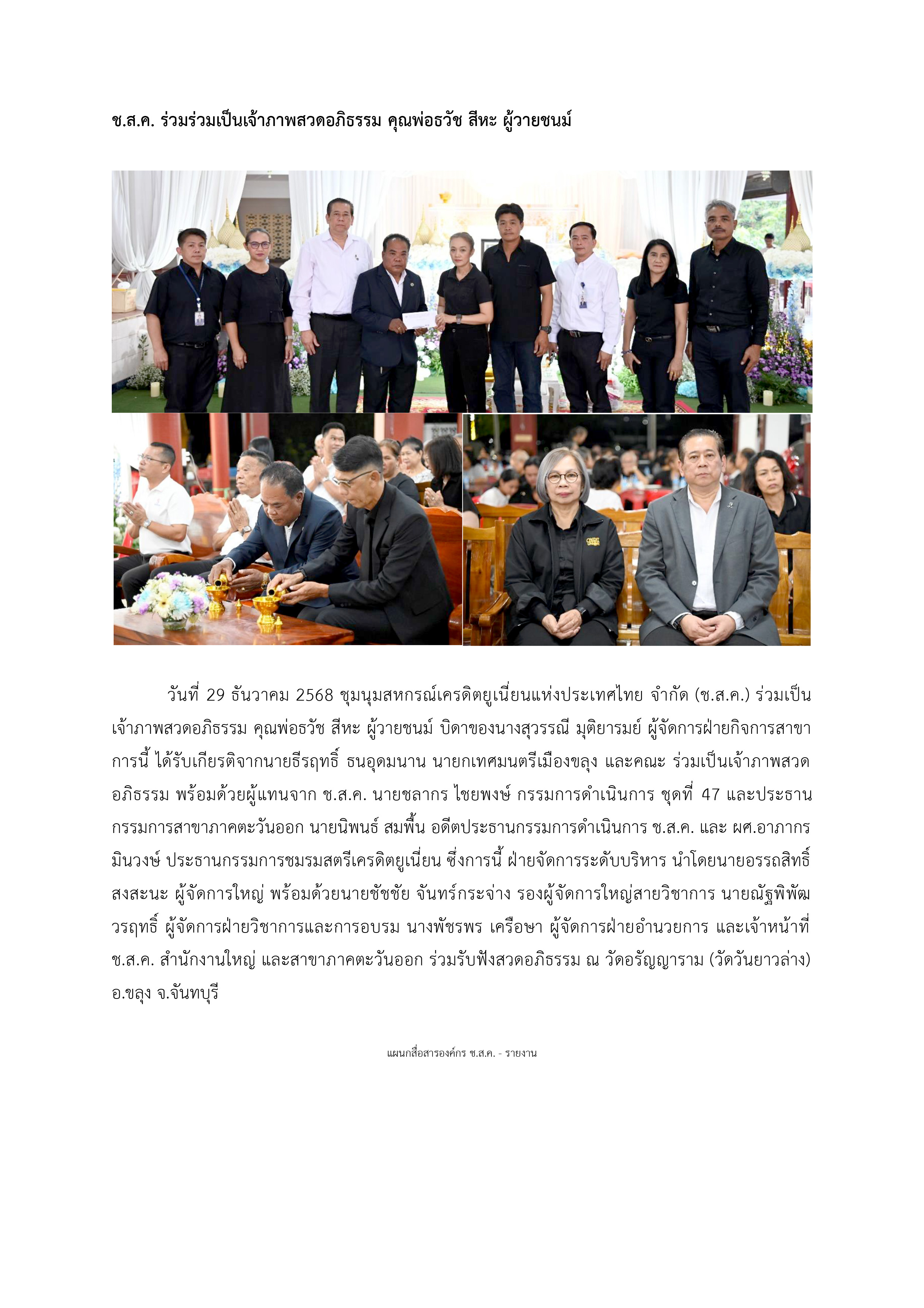 ช.ส.ค. ร่วมร่วมเป็นเจ้าภาพสวดอภิธรรม คุณพ่อธวัช สีหะ ผู้วายชนม์