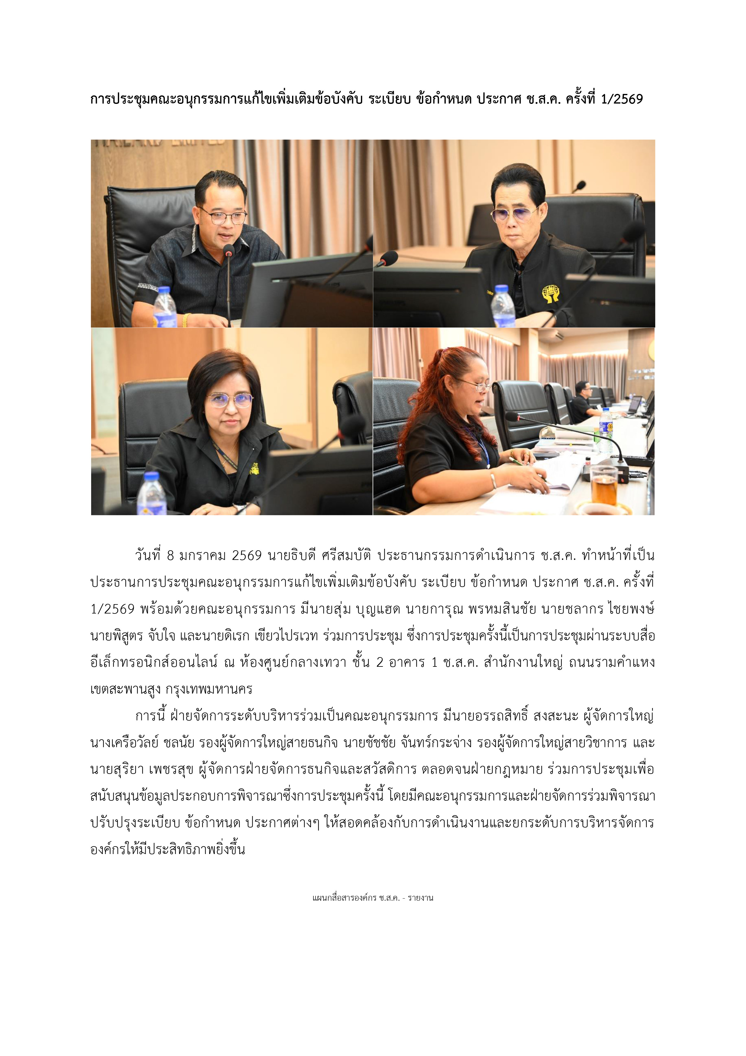 ข่าวประชาสัมพันธ์ การประชุมคณะอนุกรรมการแก้ไขเพิ่มเติมข้อบังคับ ระเบียบ ข้อกำหนด ประกาศ ช.ส.ค. ครั้งที่ 1/2569