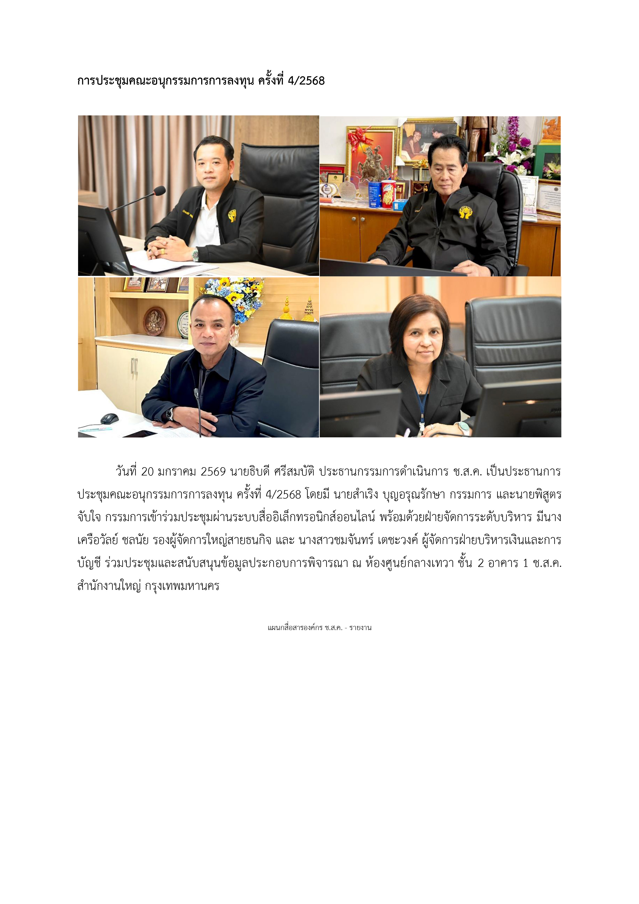 การประชุมคณะอนุกรรมการการลงทุน ครั้งที่ 4/2568
