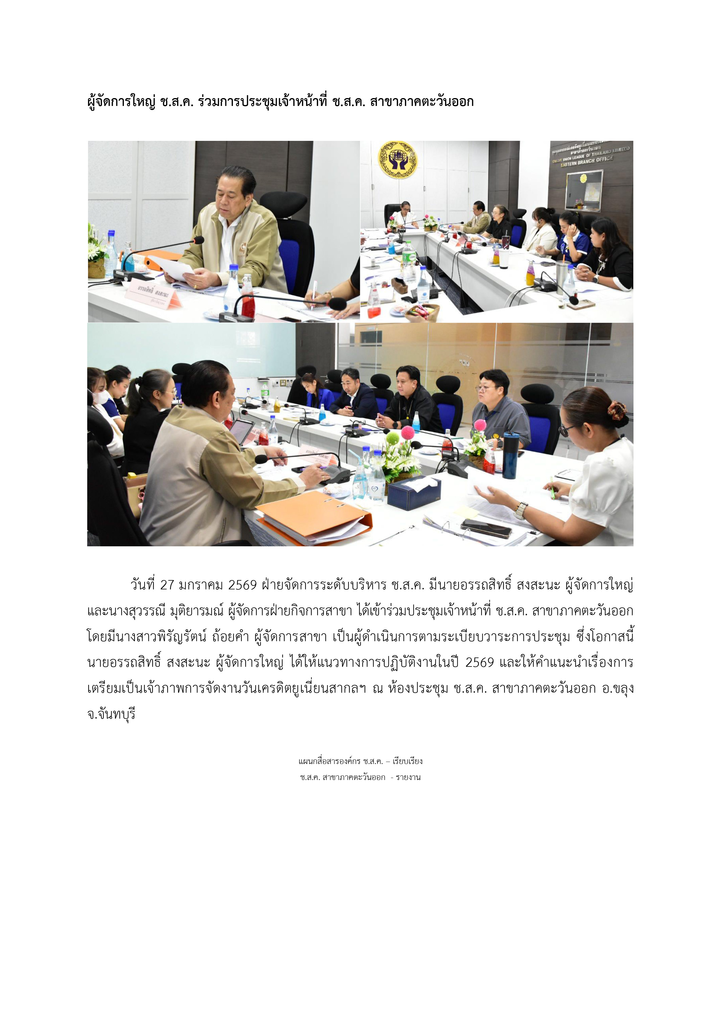ผู้จัดการใหญ่ ช.ส.ค. ร่วมการประชุมเจ้าหน้าที่ ช.ส.ค. สาขาภาคตะวันออก